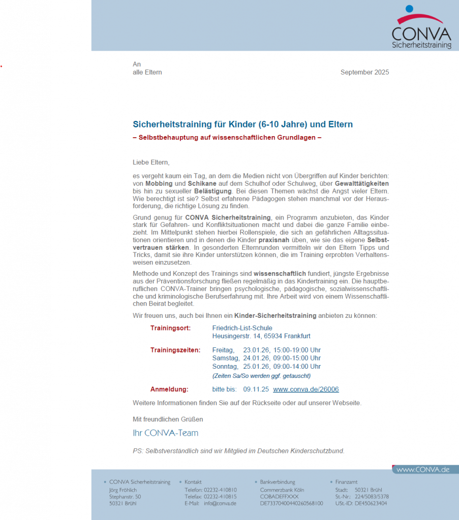 Melden Sie Ihr Kind bis zum 30. Oktober 2025 im Kindernet (bitte hier klicken!) an. Achten Sie auf Vollständigkeit Ihrer Angaben. Vielen Dank.